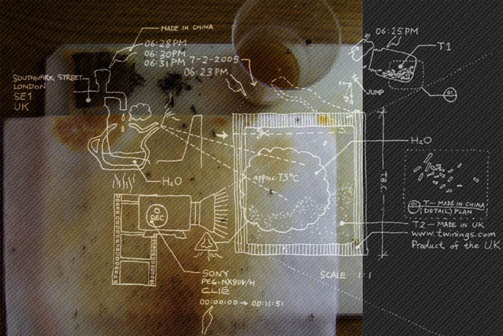 This is a record of a process by putting some Chinese tea inside English tea bags. Tea, spreads around, this shows how Chinese communities integrate with English society.